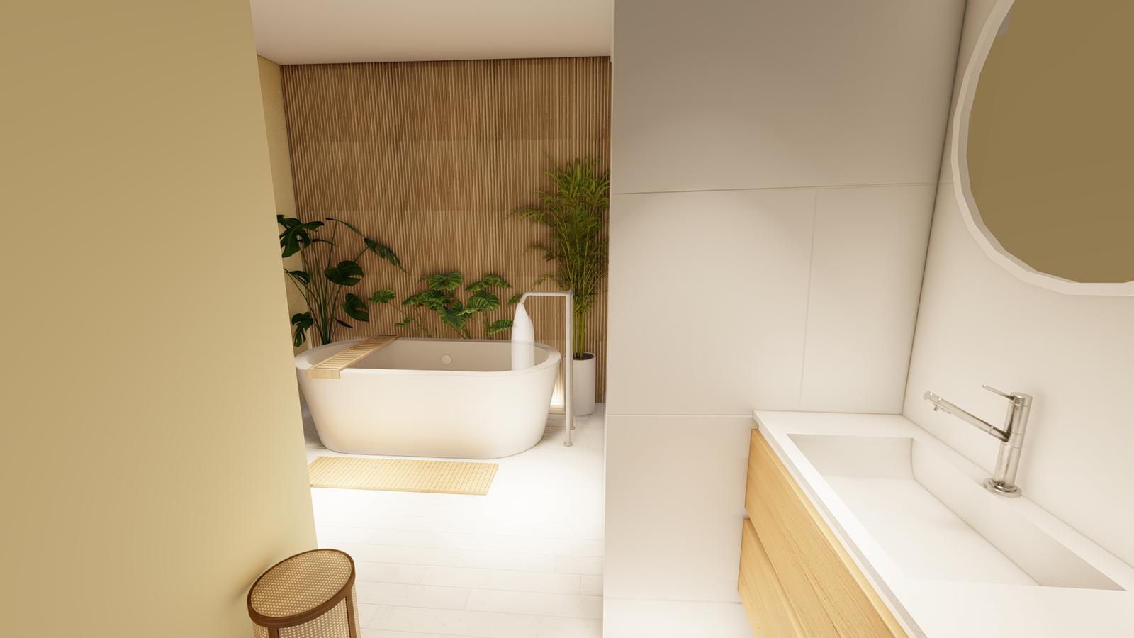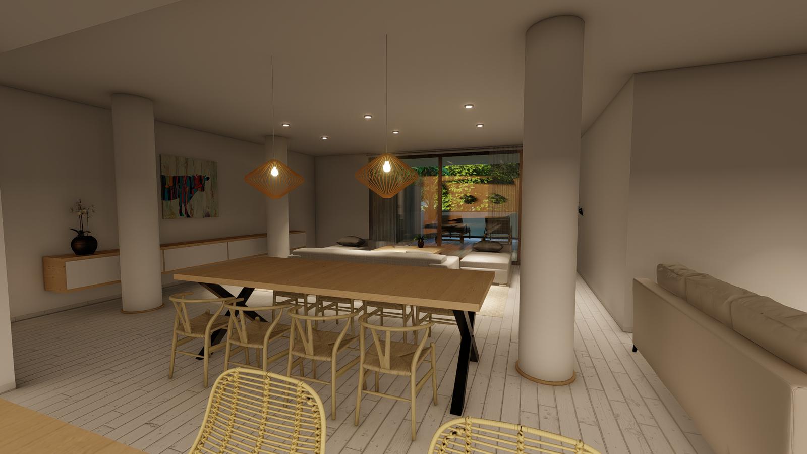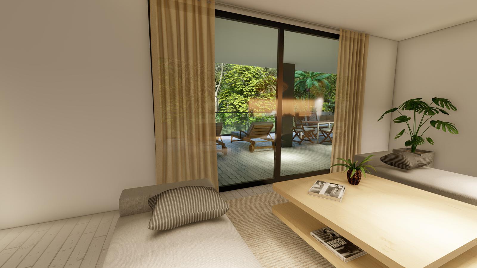 Pisos: En las unidades se utilizará porcelanato simil madera, y en baños y toilets sectores con microalisado cementicio.