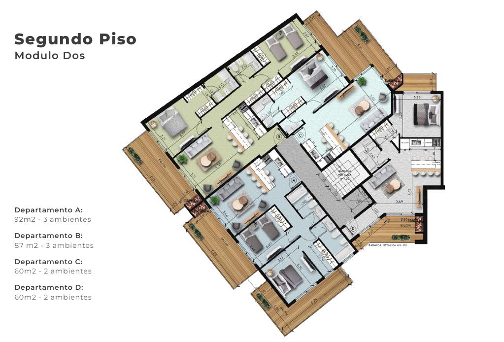 El condominio será realizado con materiales nobles, se desarrollarán en el exclusivas unidades de 1, 2 y 3 ambientes de gran categoría, muy buena calidad de construcción y detalles de muy buen gusto.