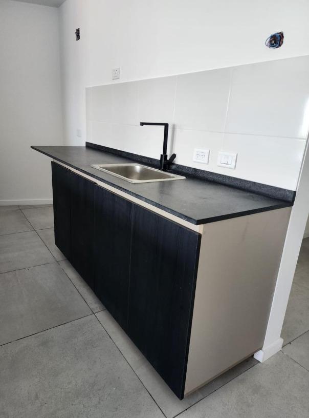 Cocina con mesada de granito, pileta de acero inoxidable, grifería mono comando FV o similar, horno a gas, muebles bajo mesada.